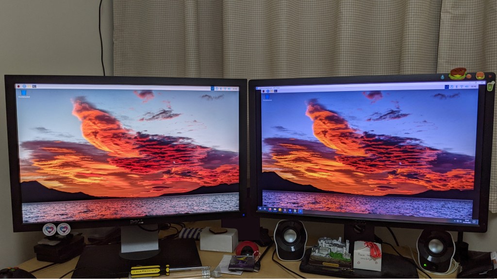 (Left-monitor = Raspberry Pi plugged into Monitor)