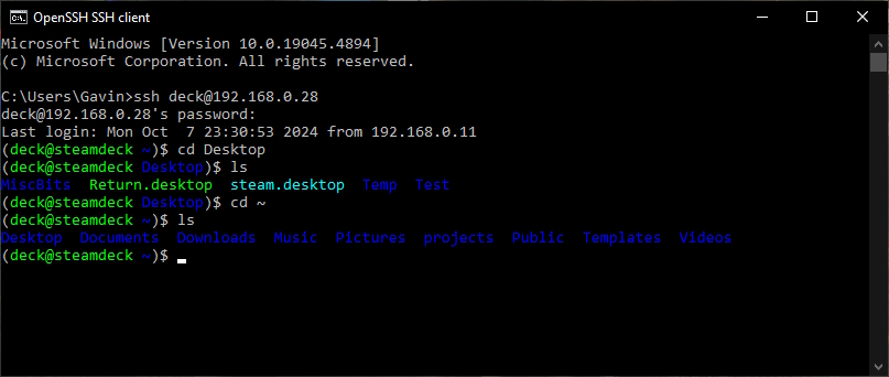 Now you can try to SSH into the Deck from your PC using the following command: