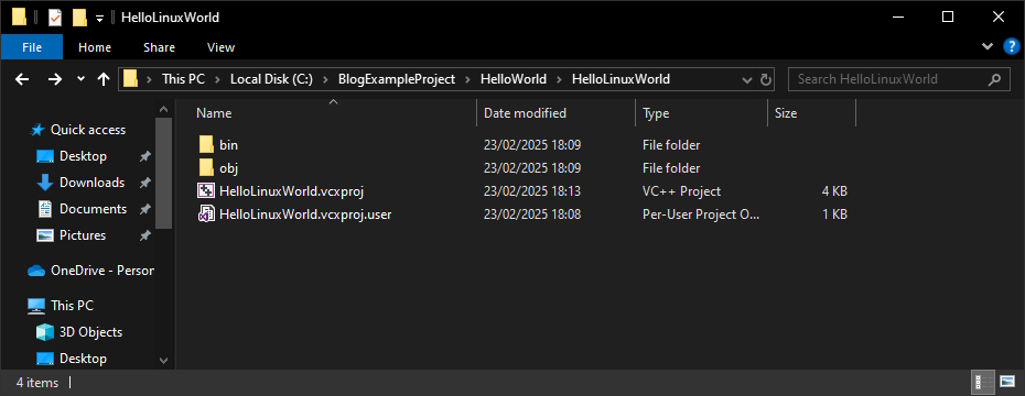 - The ‘bin’ and ‘obj’ folders are there as specified by Remote Intermediate Relative Directory and Remote Output Relative Directory.